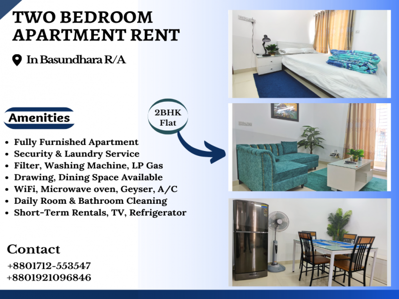২ রুম (সুসজ্জিত ) সার্ভিসড অ্যাপার্টমেন্ট ভাড়া দেওয়া হবে।